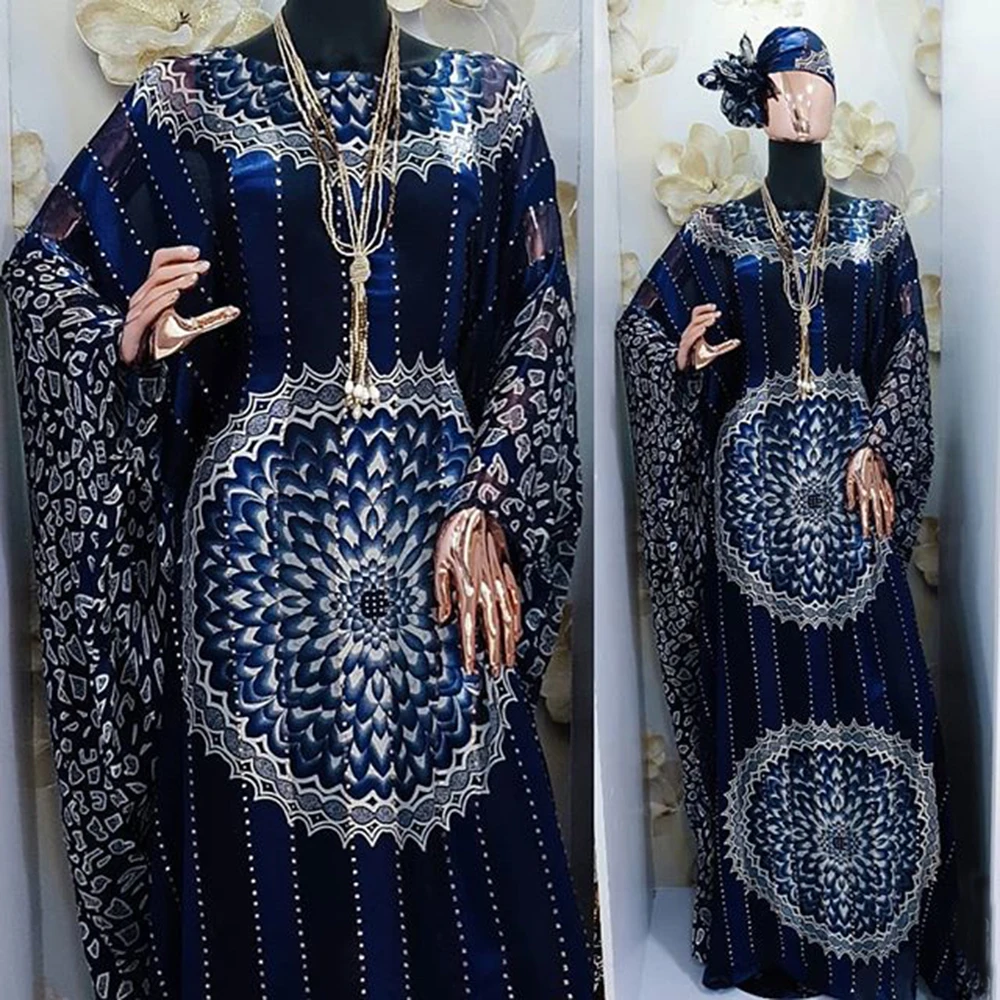 2025 Trendy African Print Chiffon Maxi Dress with Built-in Ribbon Belt