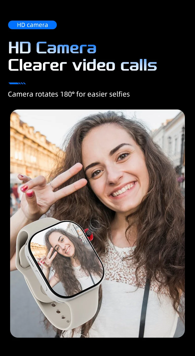 Introducing the innovative 2025 VP99 Smart Watch featuring a 180-degree rotating camera, Android 10.0, Amoled HD screen, and multi-touch support for a unique user experience.