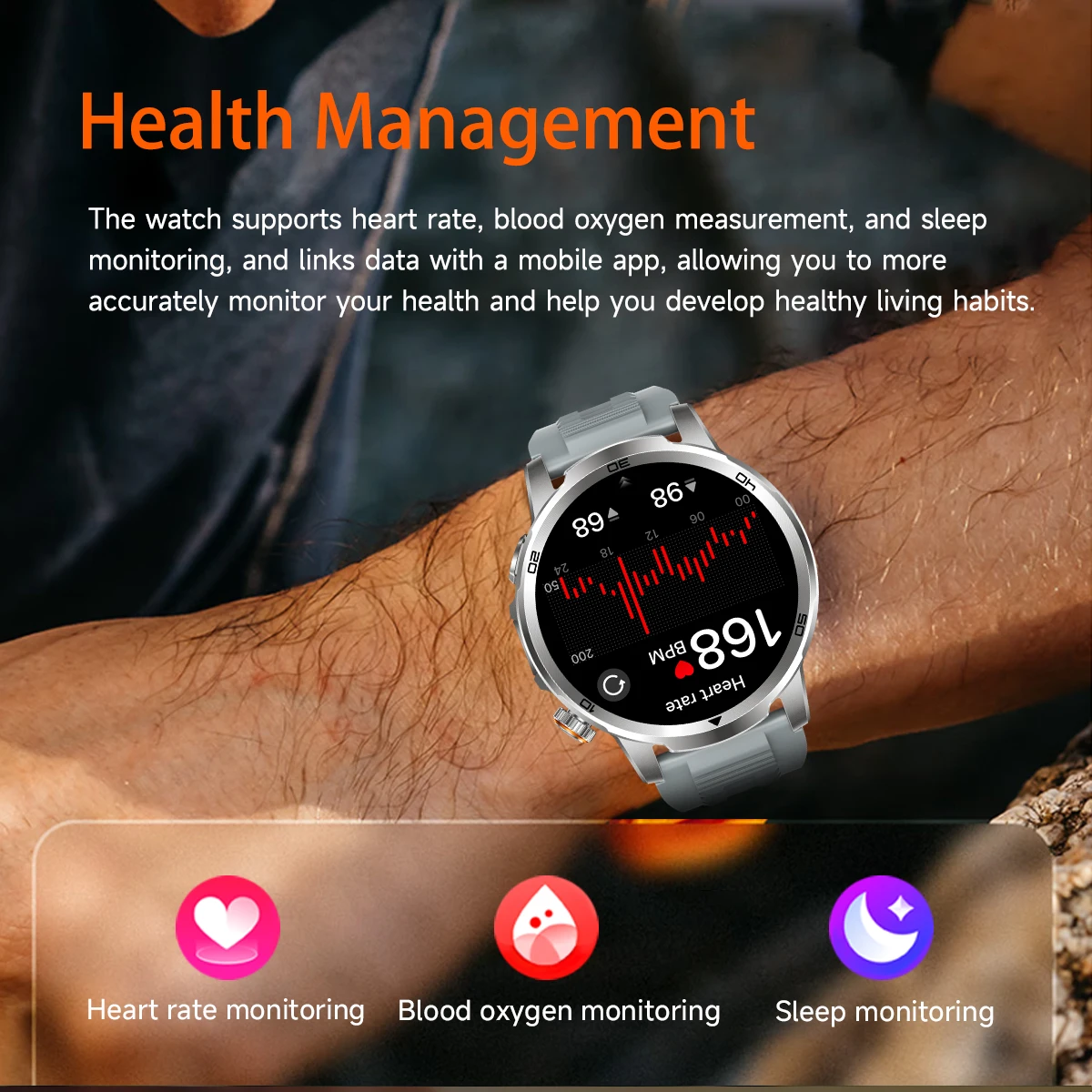 Stay connected and active with the 2026 New Outdoor Smart Watch. Featuring a vibrant 1.85 inch AMOLED display and a large 1000mAh battery, this watch is perfect for sports enthusiasts. Its 5ATM waterproof rating ensures you can wear it during your workouts without worry. With voice call capabilities and advanced fitness tracking features, this watch is your ideal companion for staying fit and connected.
