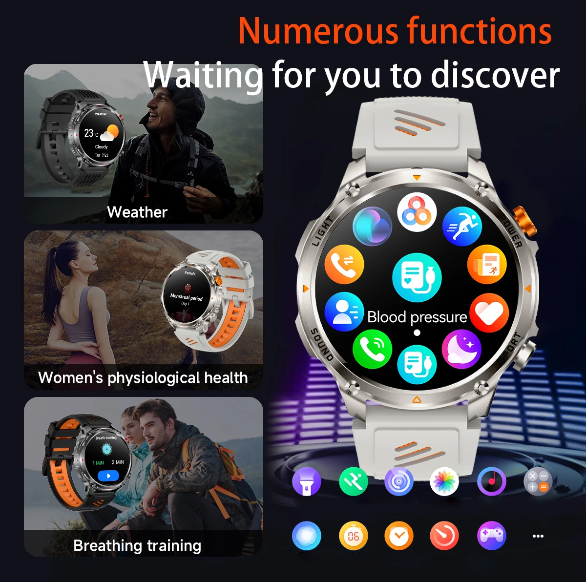 Stay connected during your outdoor adventures with the 2026 Outdoor Sports Smartwatch for Men. This smartwatch features GPS, NFC, and wireless call capabilities, all in a waterproof design rated IP68.