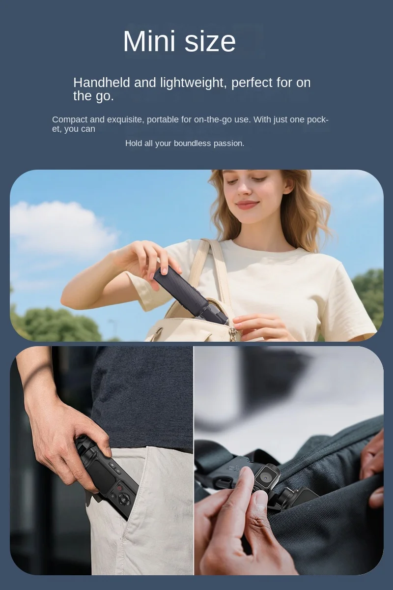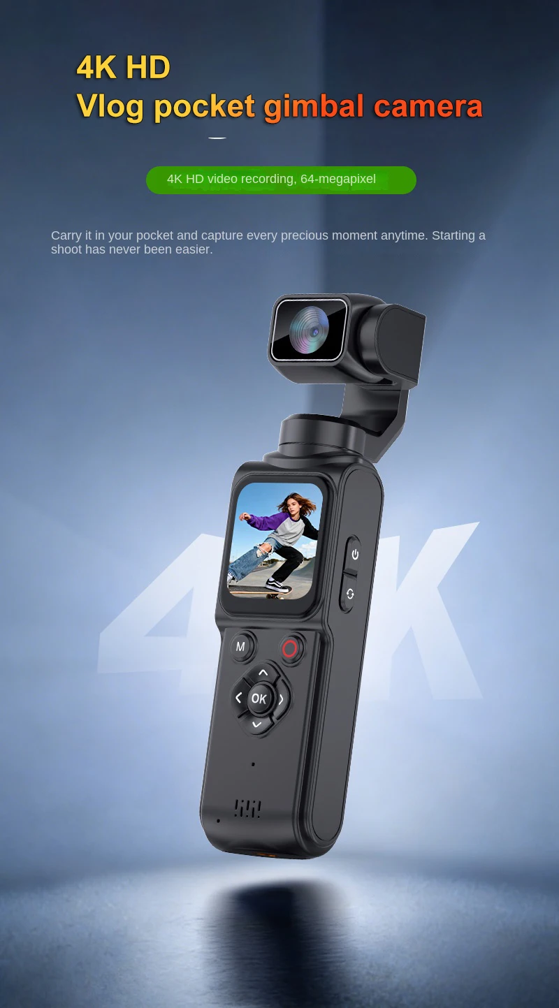 This pocket-sized gimbal camera fits easily in your pocket or bag, making it ideal for travel, vlogging, and adventure. Pair it with the included mini tripod for stable, professional-looking shots, or use it handheld for dynamic, free-flowing footage.