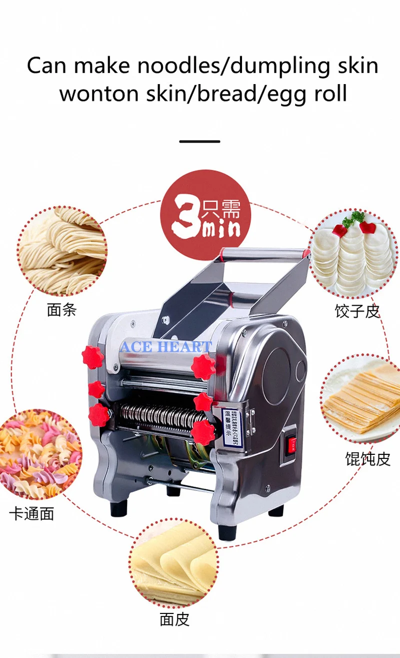 ACE HEART Commercial Noodle Making Pasta Dough Roller Machine 220V