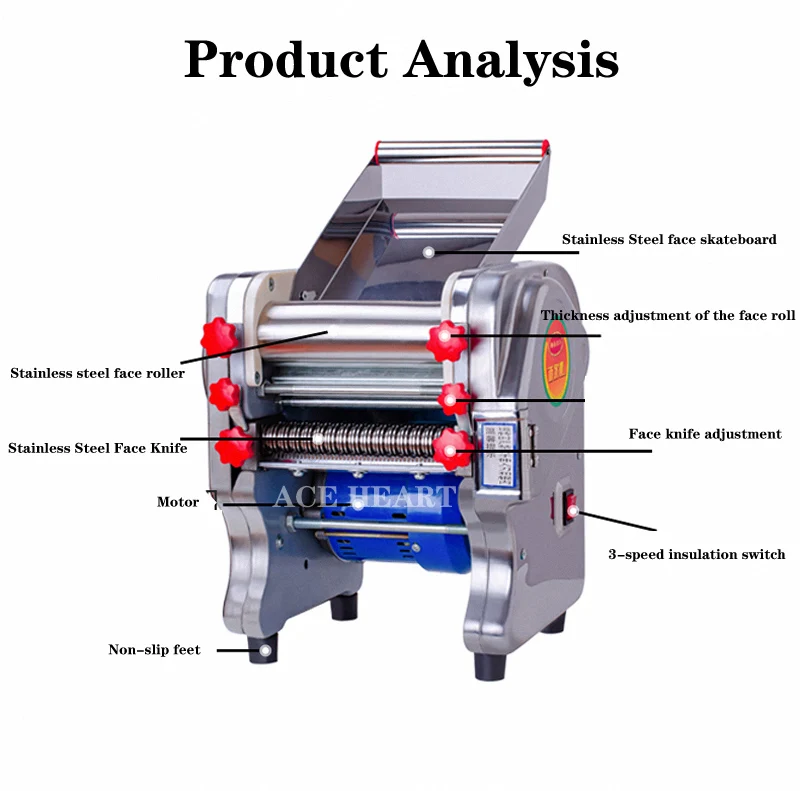 Introducing the ACE HEART Commercial Noodle Making Pasta Maker Dough Roller Machine! Enjoy fresh, homemade noodles with ease. This machine comes with a 1-year warranty for peace of mind.