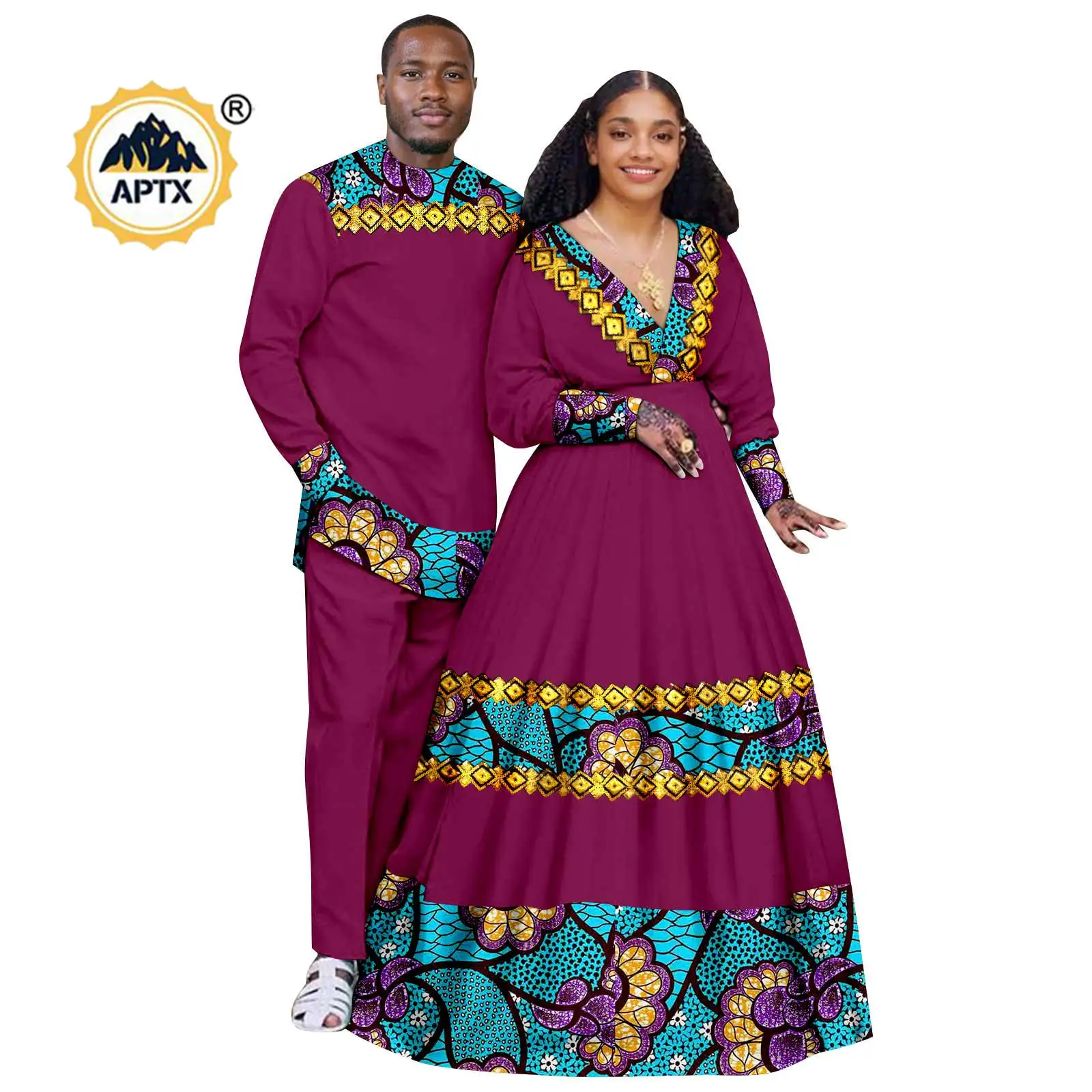 Enhance your wardrobe with these vibrant African appliques clothes. This matching outfit set is perfect for couples who want to stand out at parties and weddings.