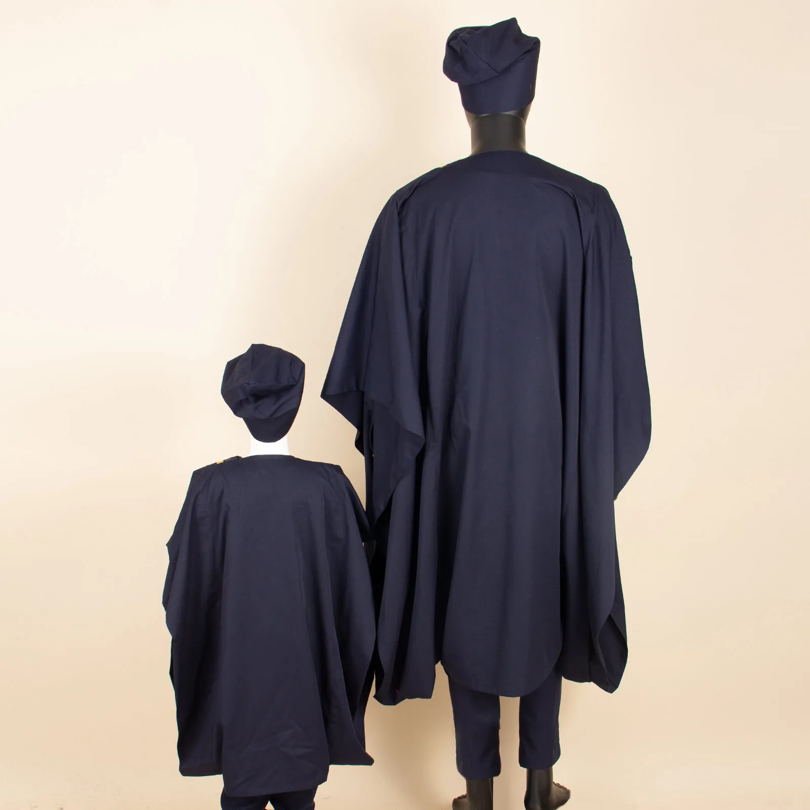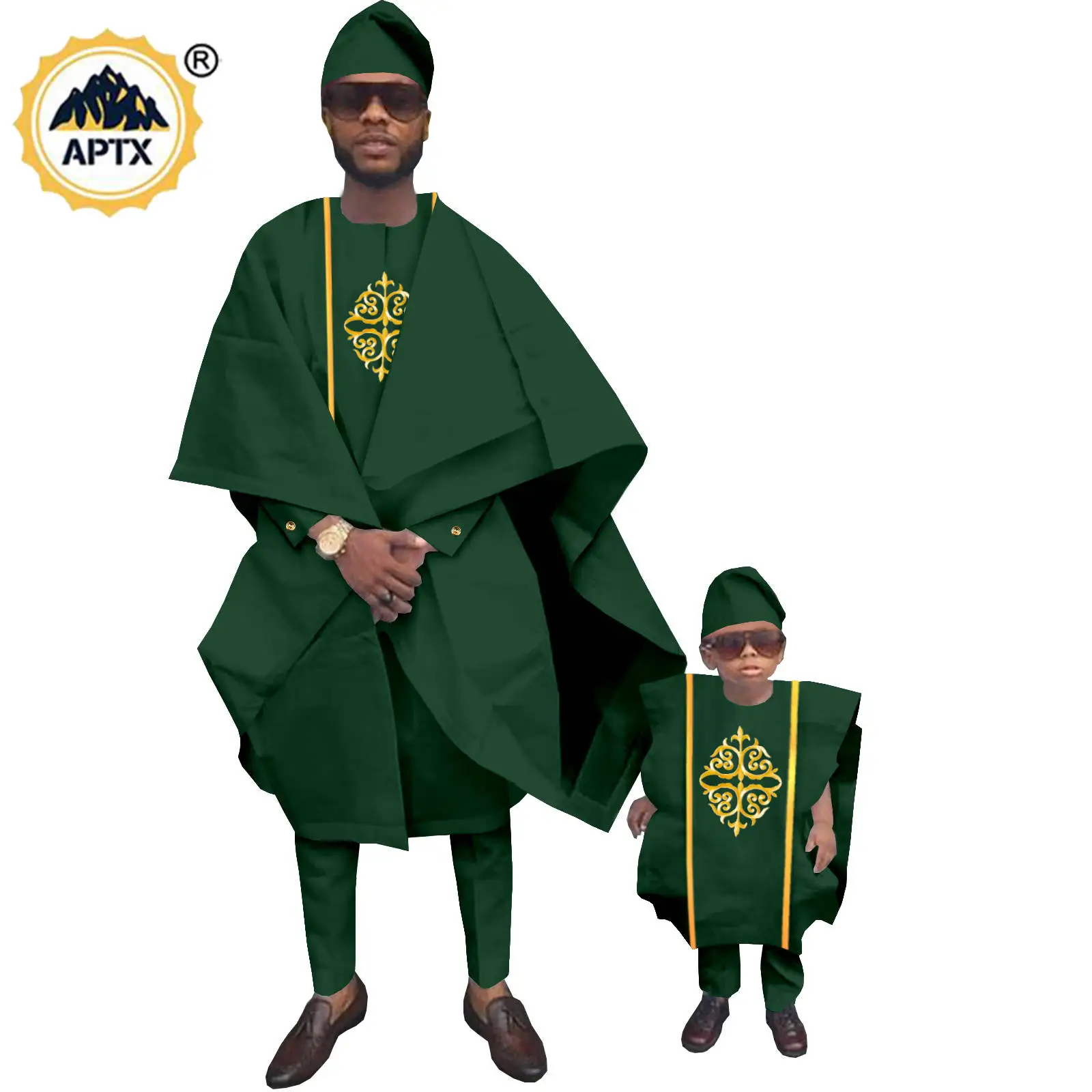 Experience the rich cultural heritage with these African Dashiki family outfits for father and son. The 3-piece set includes Agbada hat, robe, top, and pant sets, perfect for special occasions and family gatherings.