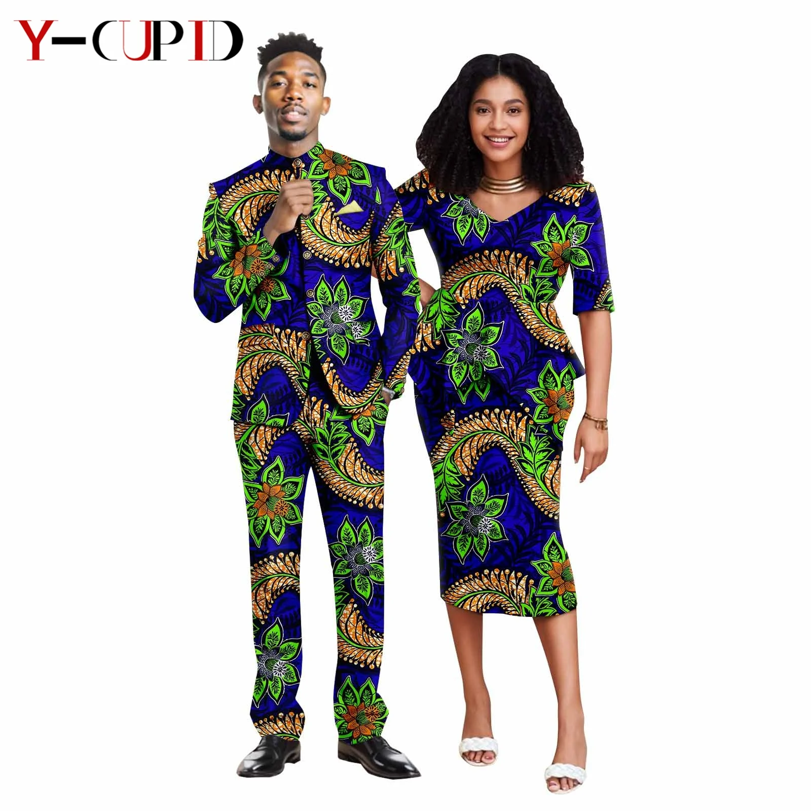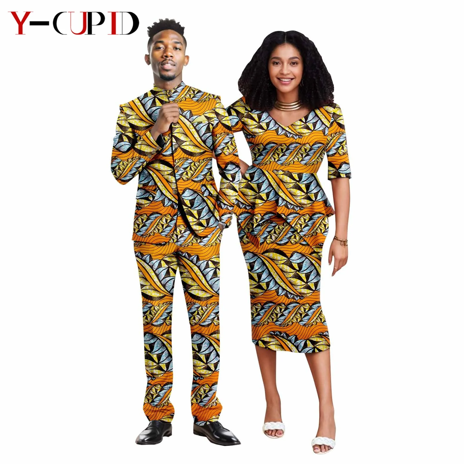 Elevate your style with these stunning African print hip dresses and matching men outfits, perfect for formal events and couple parties.
