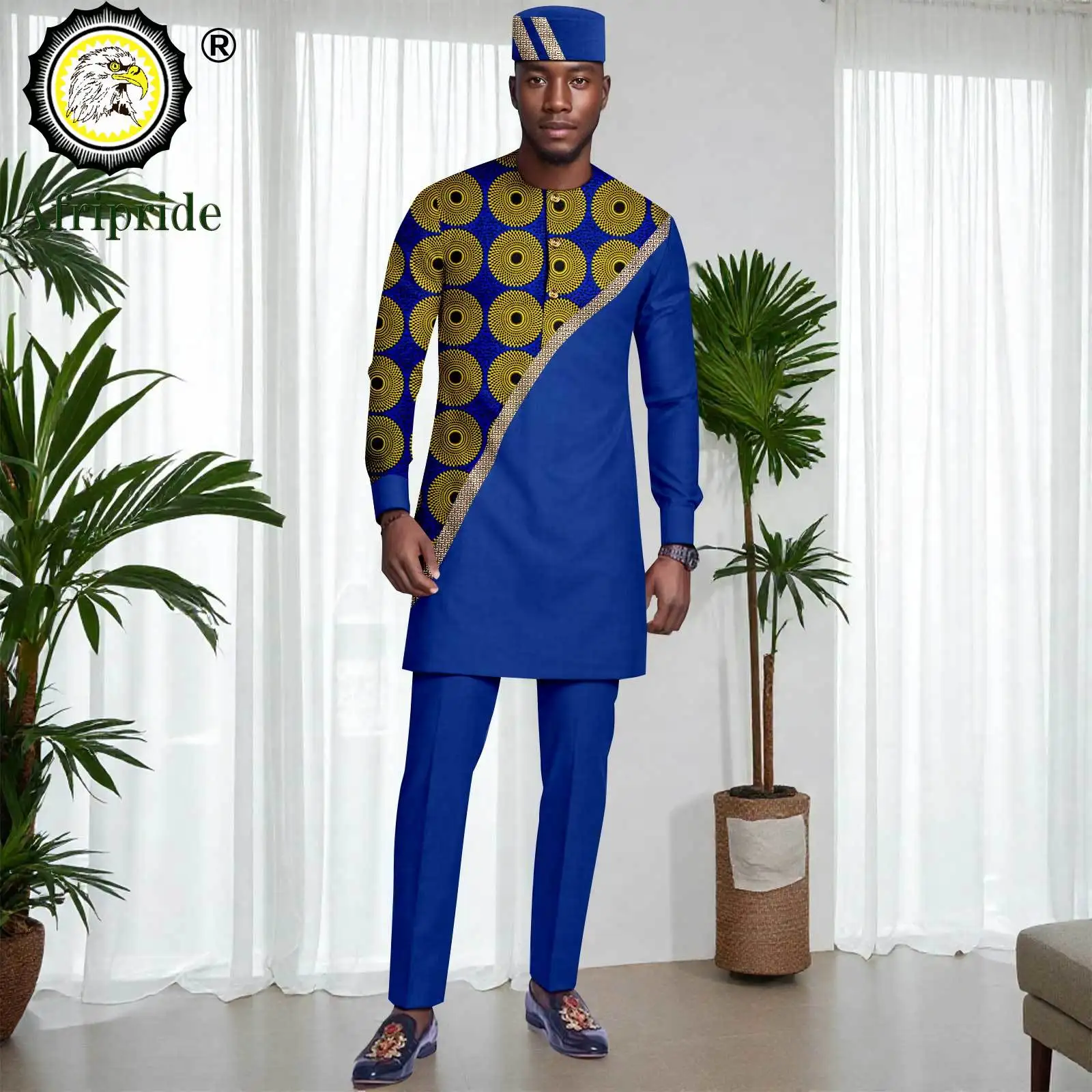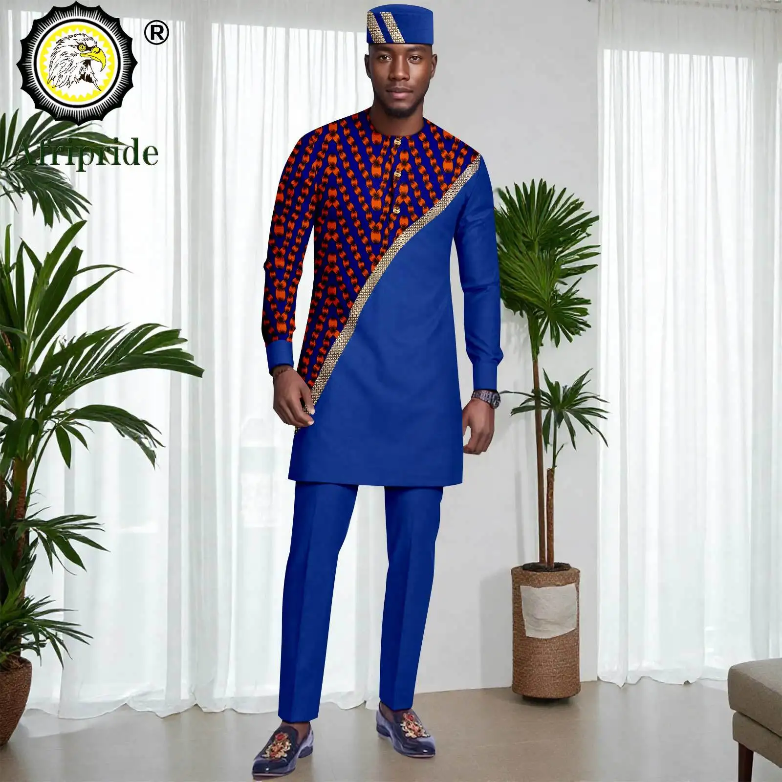Step up your style with this African-inspired men’s outfit featuring a shirt, pants, and hat. The intricate embroidery and full sleeve design make it a standout choice for any occasion.