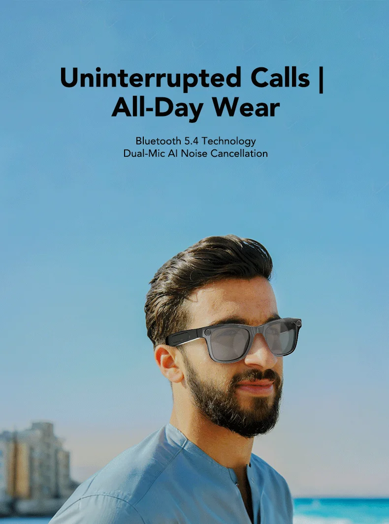 Experience seamless translations and hands-free communication with the ERAZER AG01 AI Translation Smart Glasses. These innovative glasses feature Chat GPT technology for instant language translations, Bluetooth connectivity for music playback, and hands-free call capabilities.