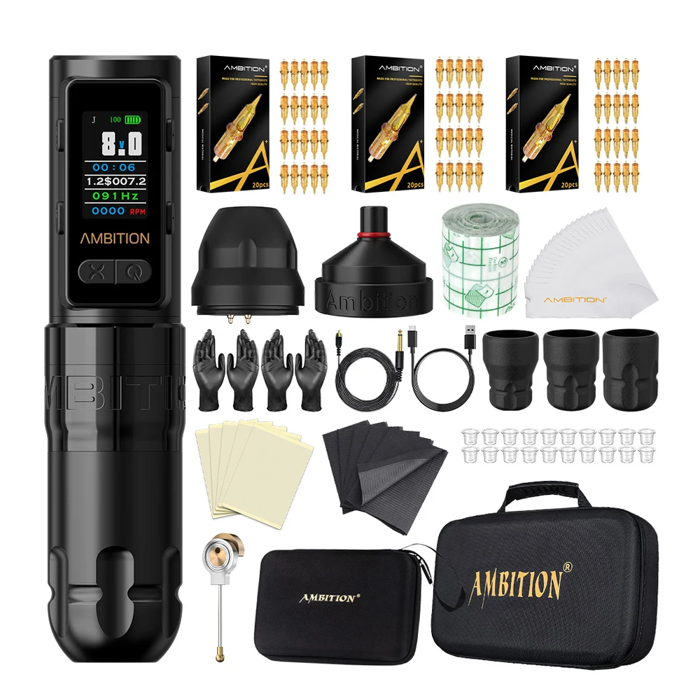 Ambition Soldier Max Wireless Tattoo Machine – High-Quality Machine with HD Color Screen and Multifunctional Battery