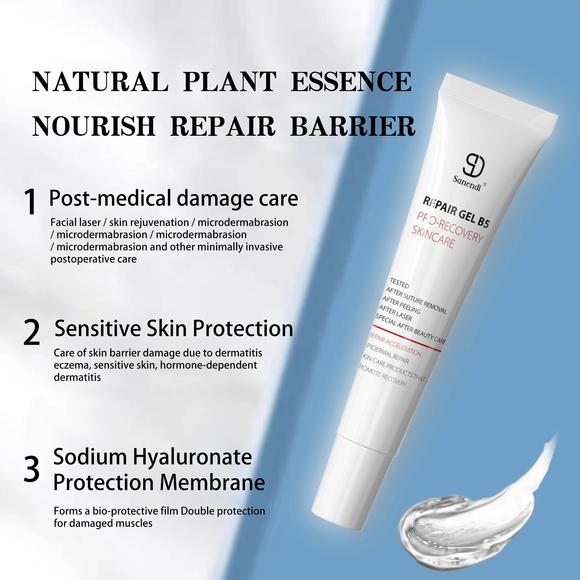Experience the rejuvenating power of the 3-piece Set B5 Repair Gel, specially designed for repairing and accelerating beauty care recovery. Enhance your skincare routine with this pro-recovery essence.