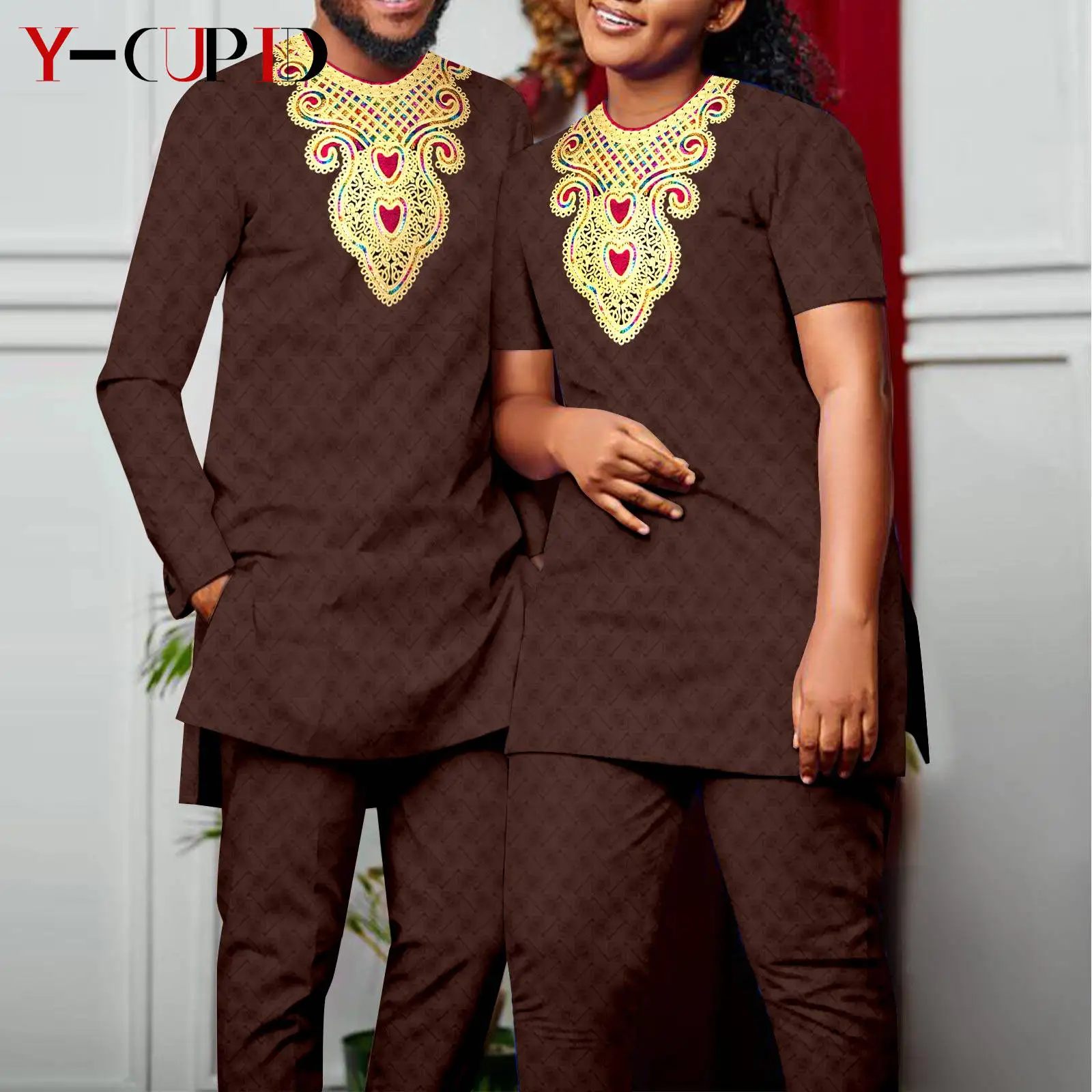 Bazin Riche African Couples Outfits Set – Jacquard Top and Pants, Party Outwear