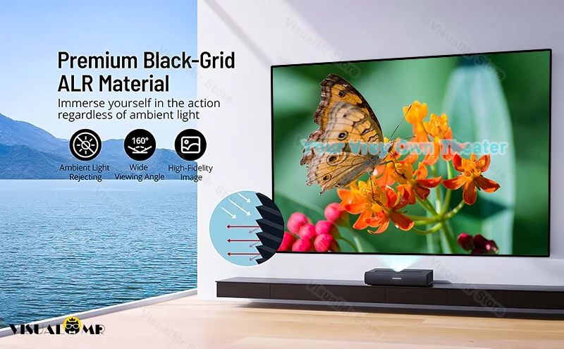 This screen is specifically tailored for ultra-short-throw (UST) laser projectors, including popular models such as the Wemax 4K Laser, Xiaomi Mi Home 4K Laser, Optoma 4K Laser, LG 4K Laser, and Hisense UST series. It delivers superior image quality compared to plain white walls and white screens.