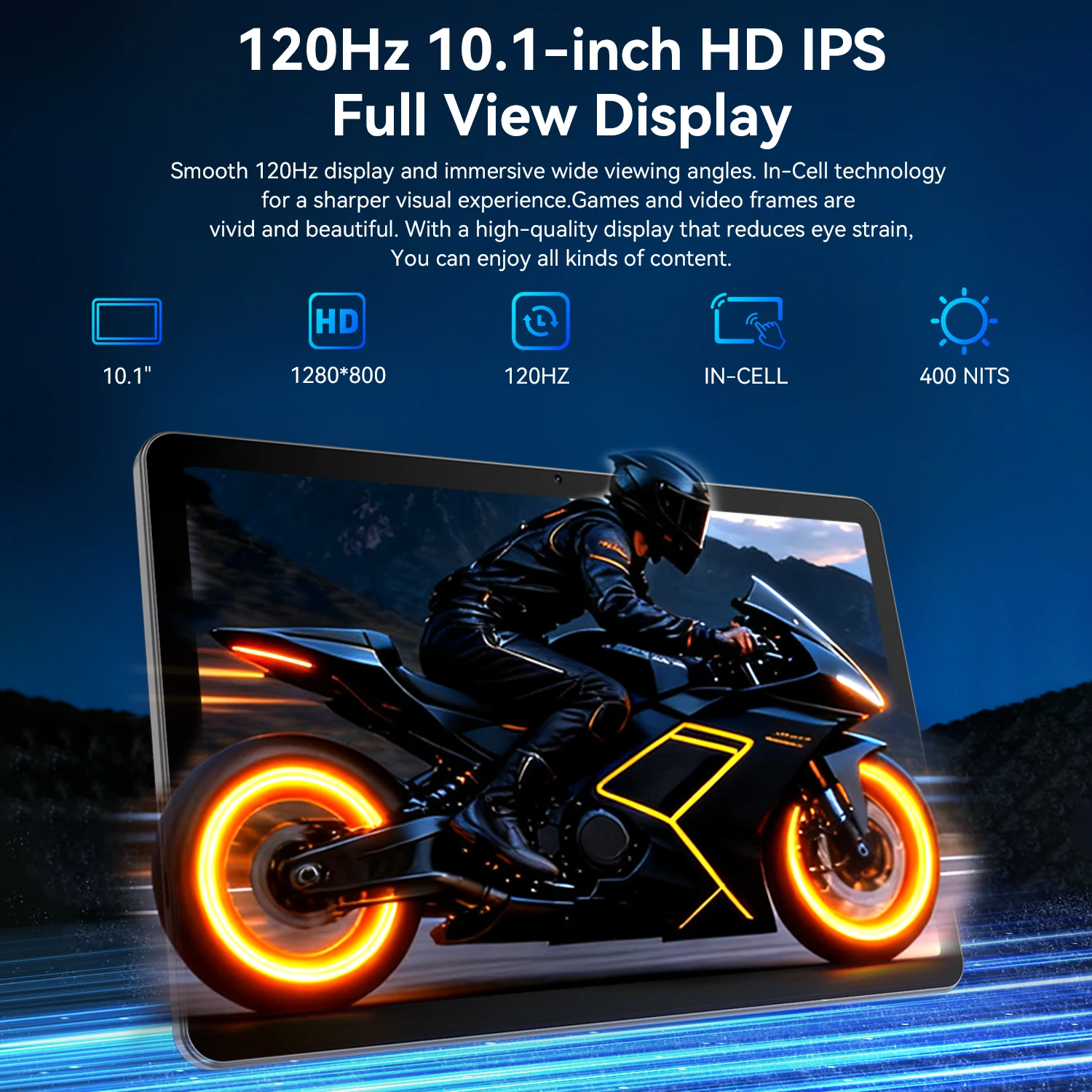 Boasting a 10.1'' HD IPS screen with a resolution of 1280×800, this tablet offers vivid and clear visuals for an immersive viewing experience.