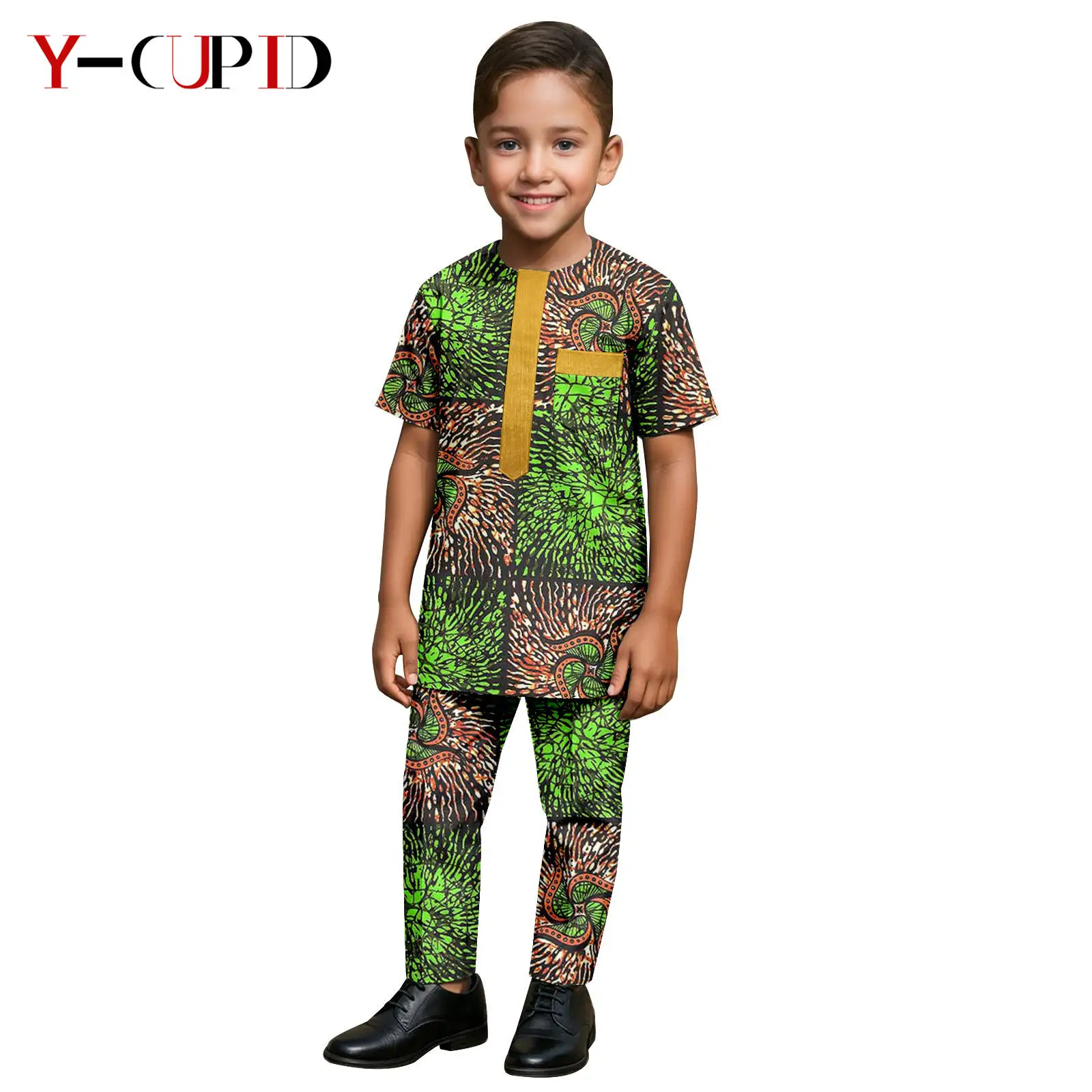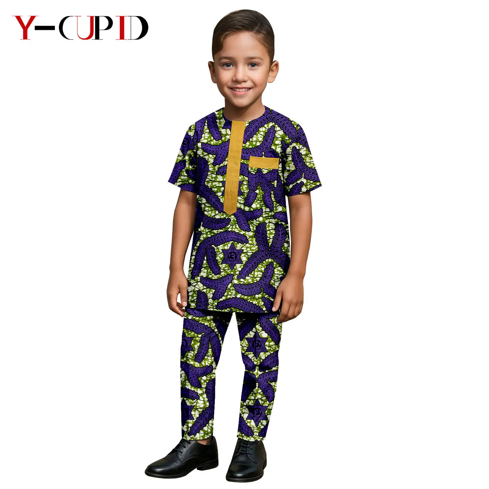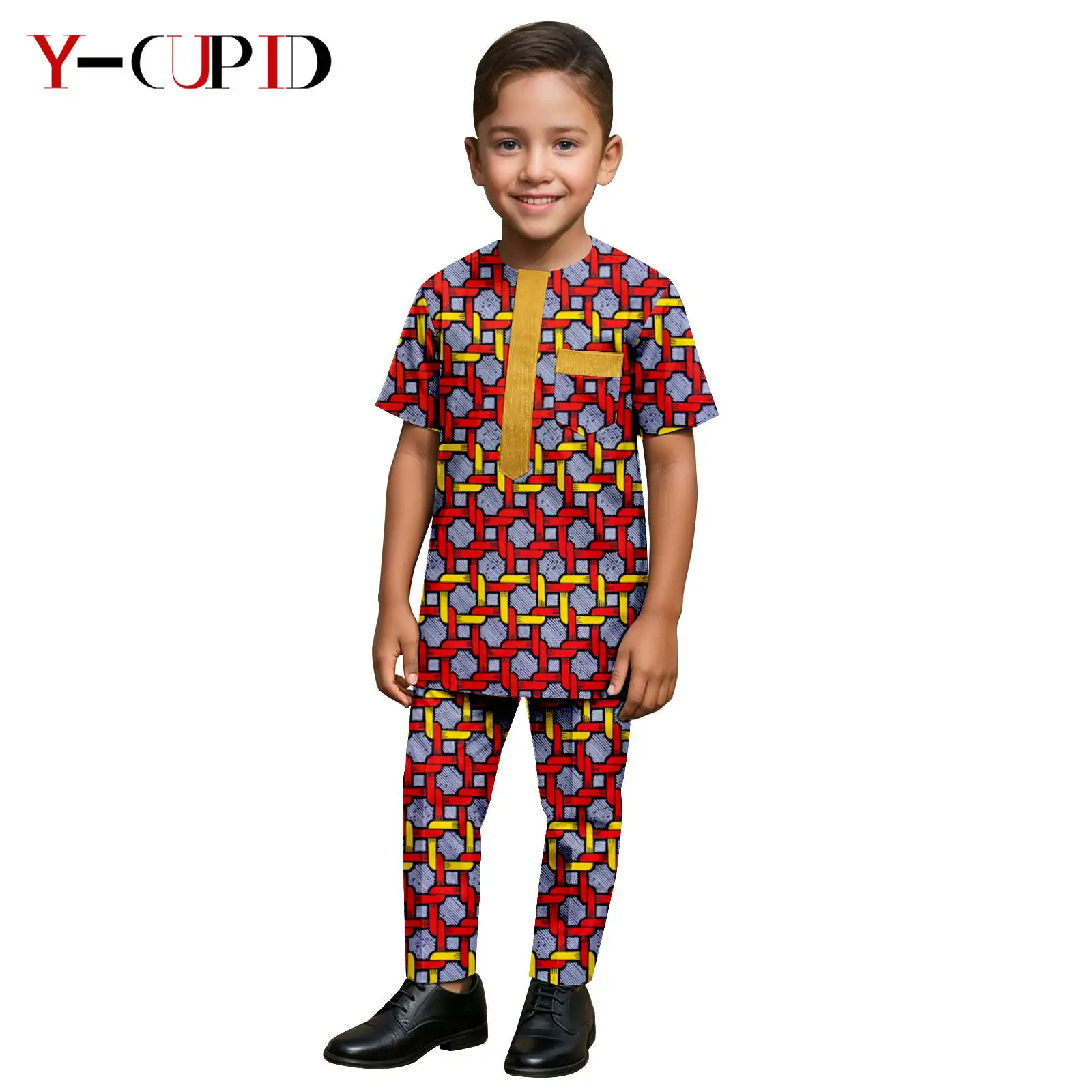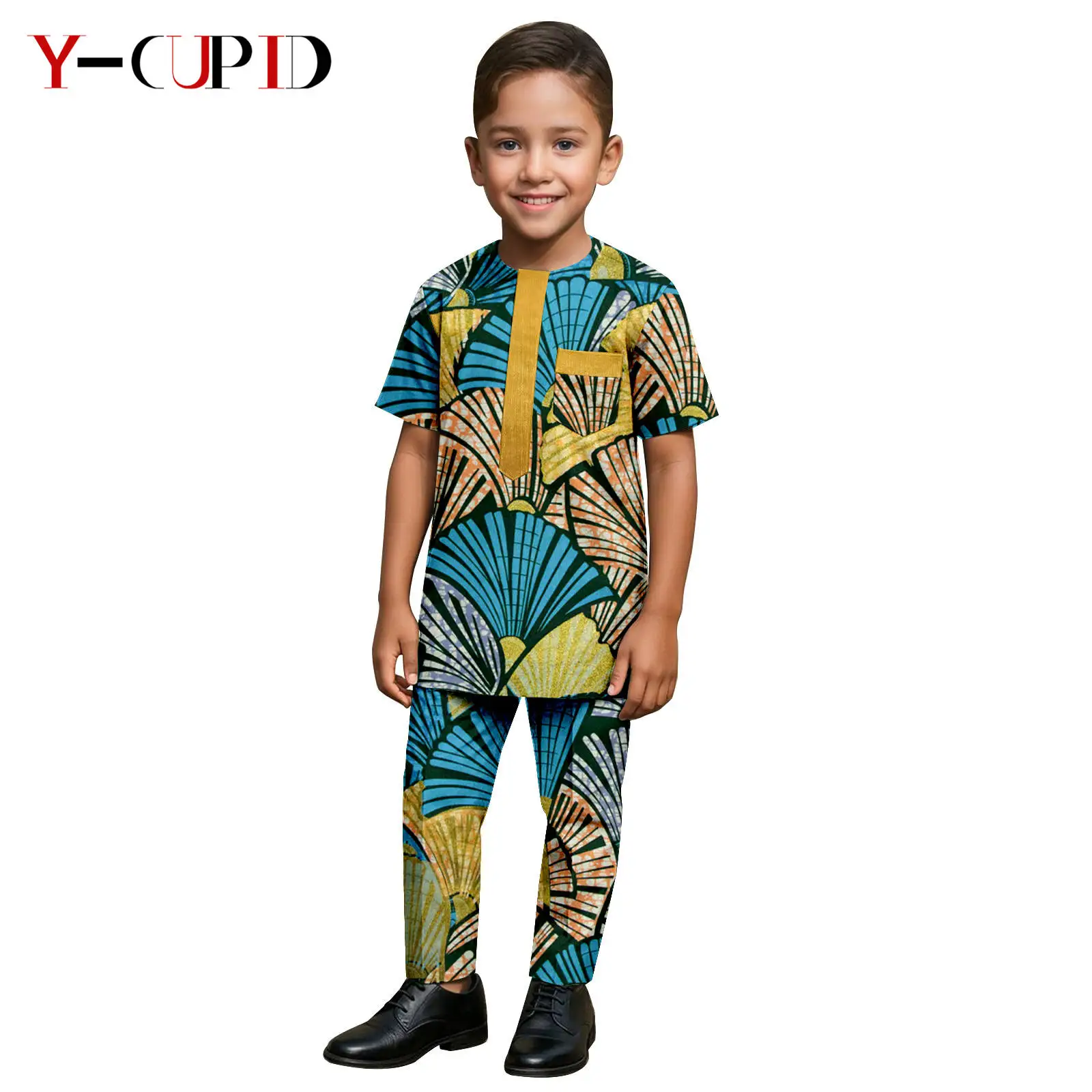 Bright African Kids Outfits – Dashiki Print Top and Pant Sets
