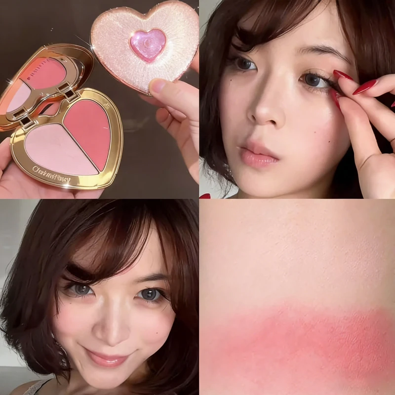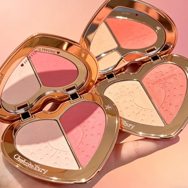 Get a naturally high-gloss look with Charlotte Tilbury’s two-color heart-shaped blusher set. This brightening powder duo adds a pearlescent glow to your makeup routine.