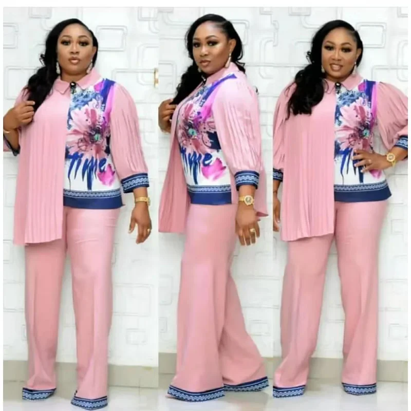 Elevate your daily style with this chic African fashion two-piece set. The set includes a stylish top and high-waisted wide-leg pants, perfect for casual and comfortable wear.