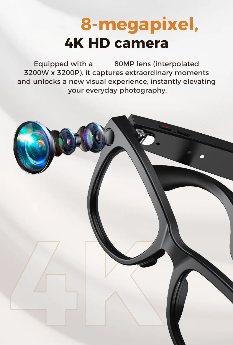 Crystal Clear 800MP Camera Smart Glasses with Dual Speakers and Bluetooth 5.3 Connectivity