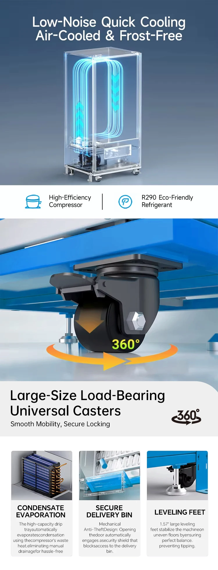 Food machines such as dining carts, pizza machines, cotton candy machines, ice cream machines, popcorn machines, vending machines, etc.