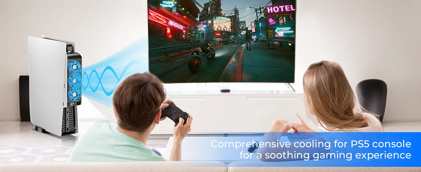 【Efficient PS5 Fan】: Upgrade ps5 cooling fan with horizontal cooling fan.The ps5 cooler fan pushes hot air out of your console, helping your PS5 disc and PS5 digital editions stay cool and run smoothly.
