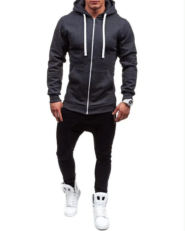 Fashionable Men’s Zip Hooded Jacket for Spring/Autumn