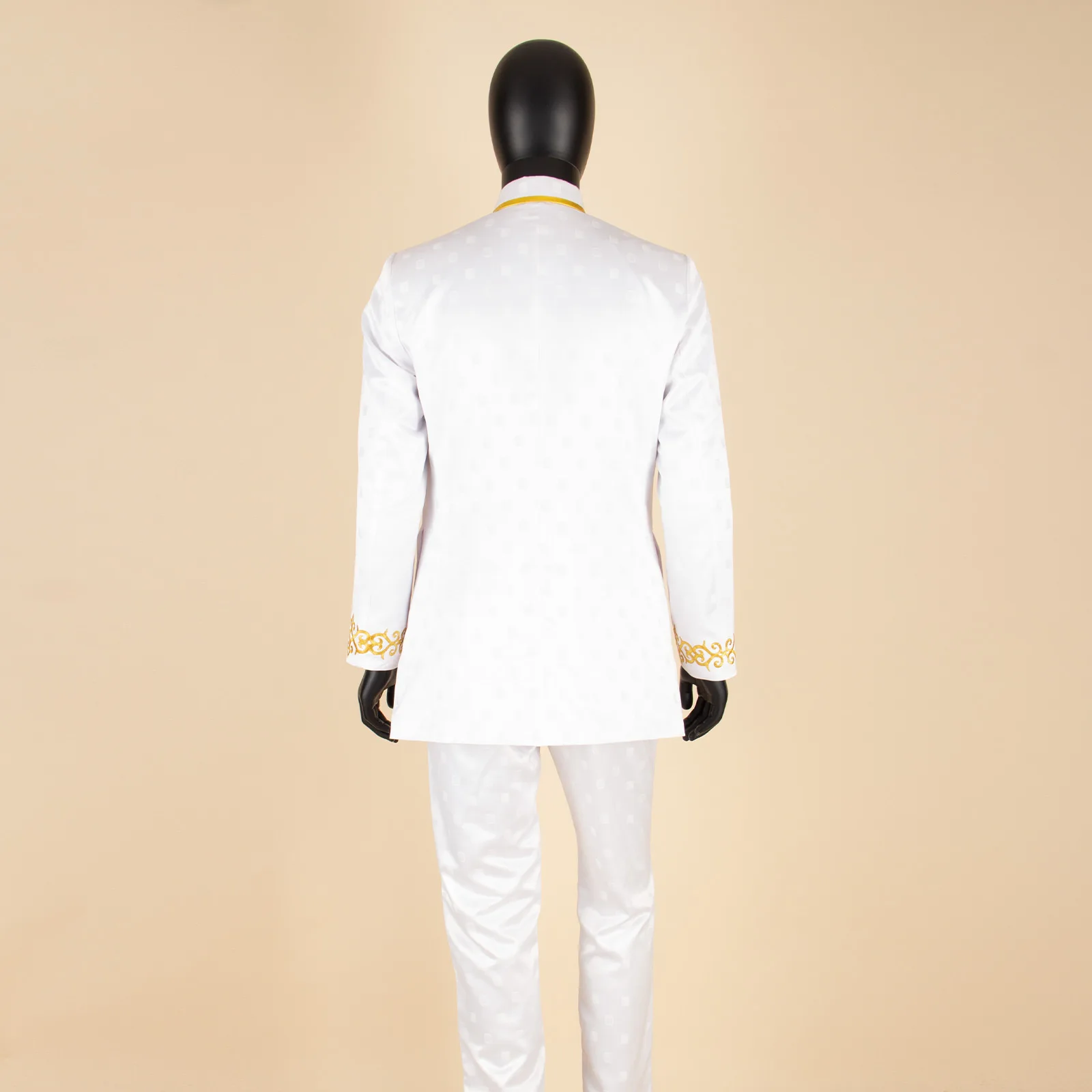 Gold Embroidery African Men Suit for Traditional Wedding Business Attire