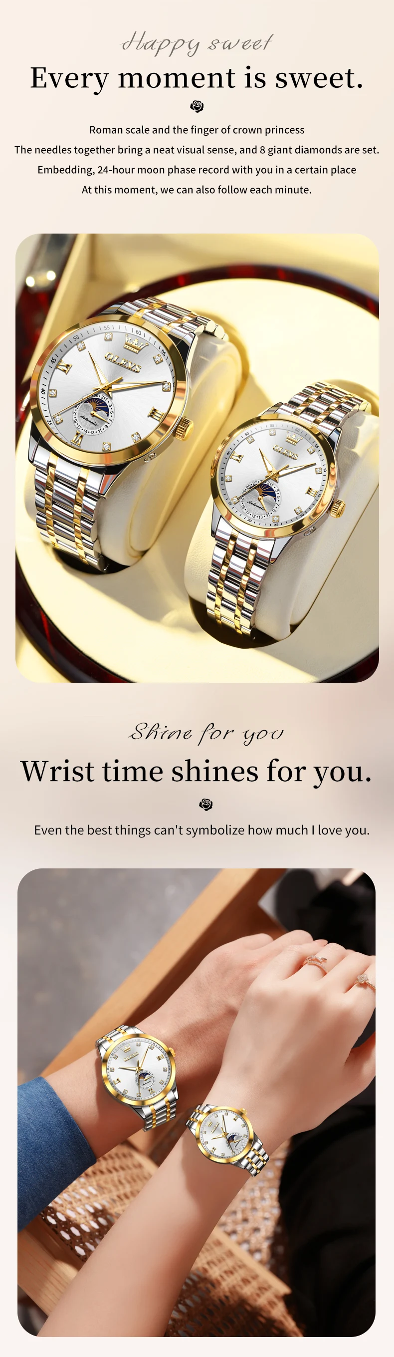 Elevate your style with this elegant set of his and her diamond fashion watches. These waterproof automatic mechanical timepieces blend luxury with precision, making them a perfect accessory for any occasion.