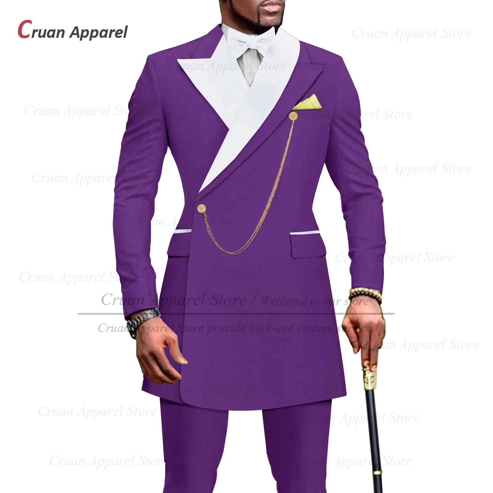 Welcome to cruam tailor-made suits store! Elevate your style with our luxury African wedding tuxedo for men. Perfect for any formal occasion, the slim-fit suit set ensures you stand out in fashionable elegance.