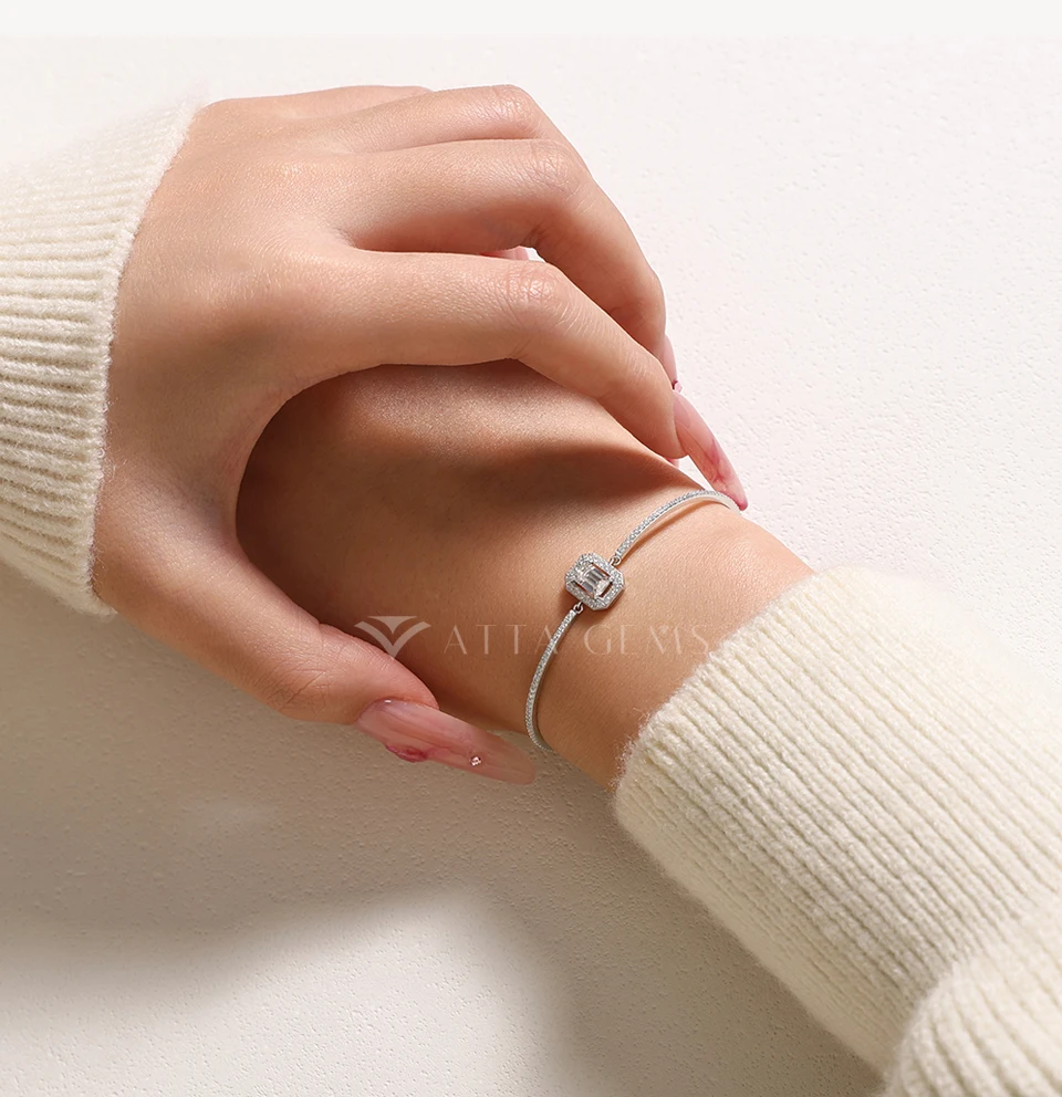 Elevate your style with this luxurious emerald-cut Moissanite bracelet crafted from 925 sterling silver. Perfect for weddings and engagements, this dazzling piece exudes elegance and sophistication.