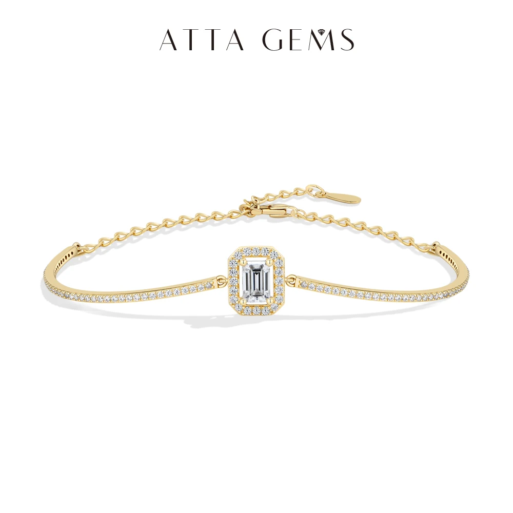 ATTAGEM Luxury Dazzling Emerald Cut Moissanite Bracelet 925 Sterling Silver Adjustable Bracelet Women Wedding Engagement Jewelry
