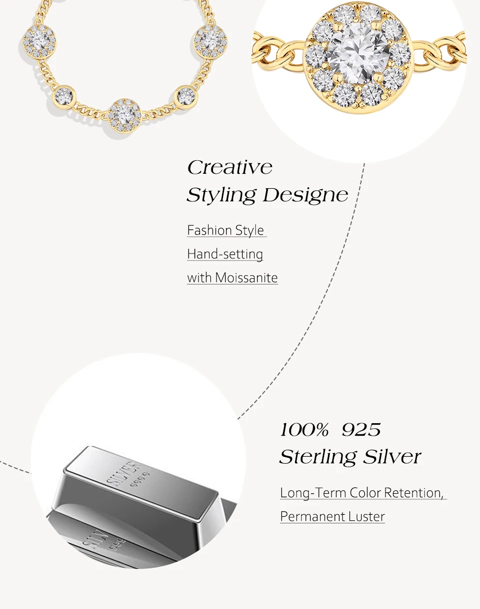 ATTAGEMS Luxury Moissanite Bracelet for Women S925 Silver Yellow Gold Plated Round halo D Color VVS1 Diamond Wedding Jewelry New