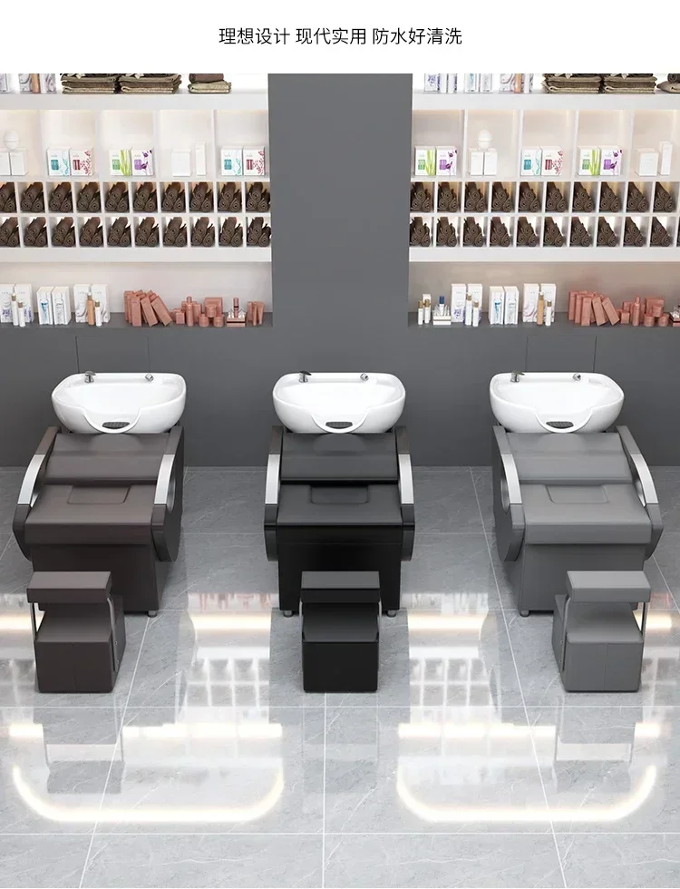 Enhance your salon experience with this luxury modern shampoo sink and salon bed. Comfortable, inclineable, and stylish, this salon furniture is perfect for a high-end beauty salon.