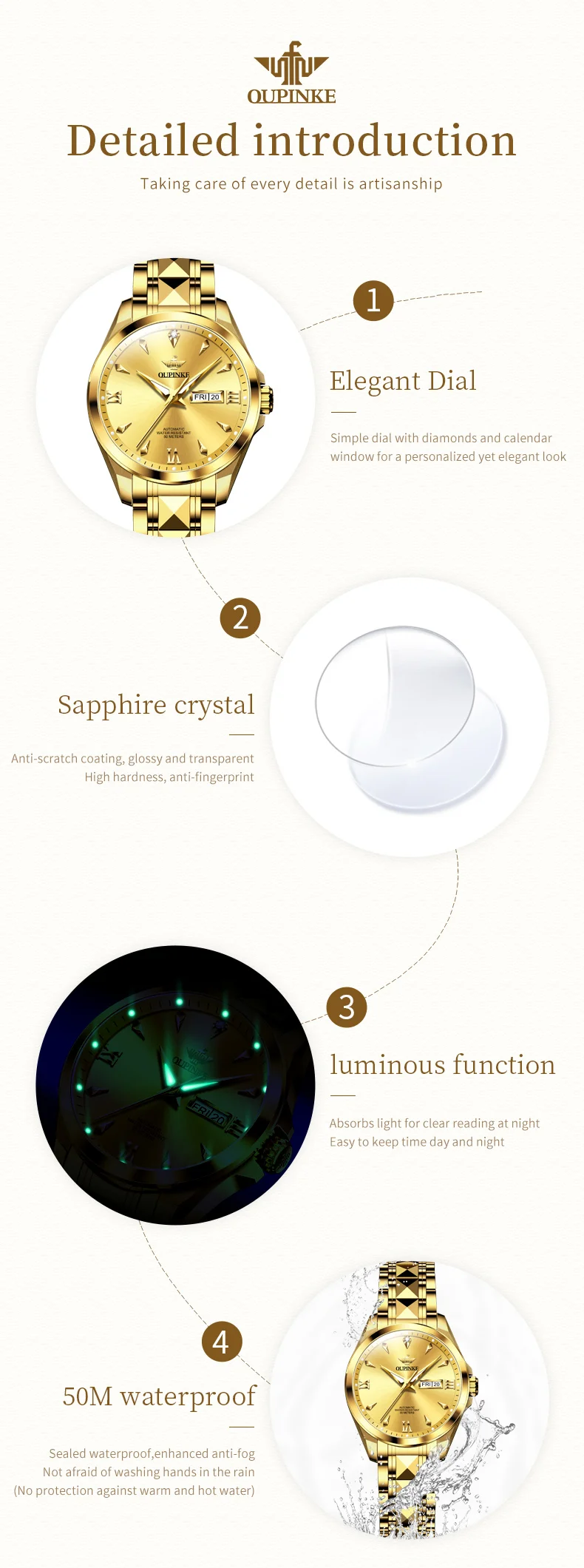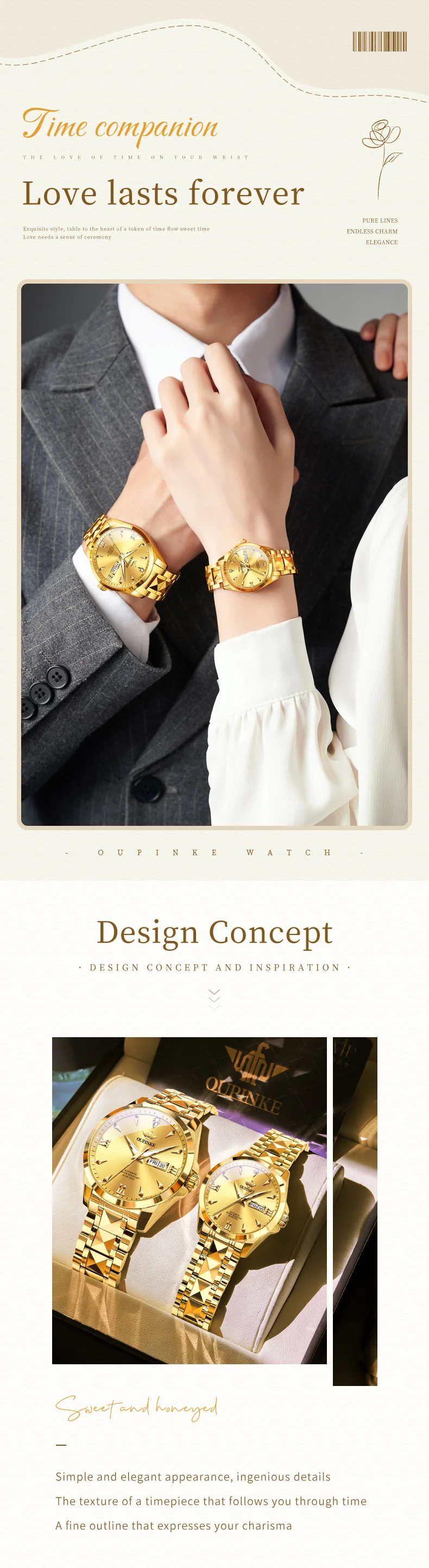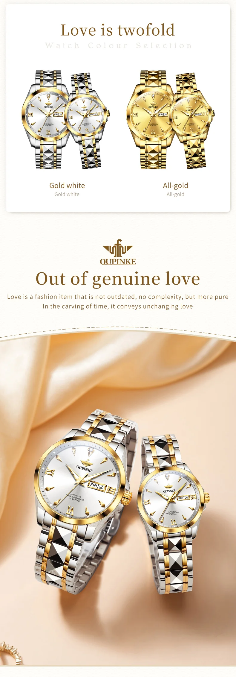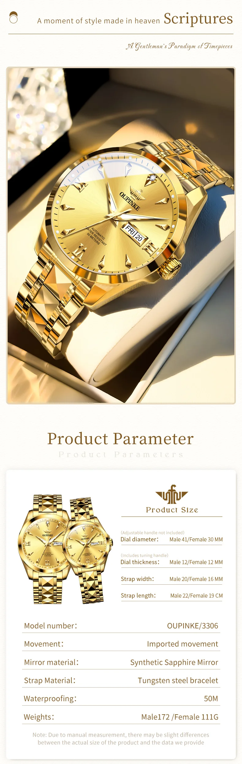 Elegance and sophistication meet in this exquisite OUPINKE 3306 Couple’s Watch. Crafted with true diamonds and a high-end gift brand mechanical design, this Tungsten Steel Strap timepiece is a luxurious statement for both men and women.