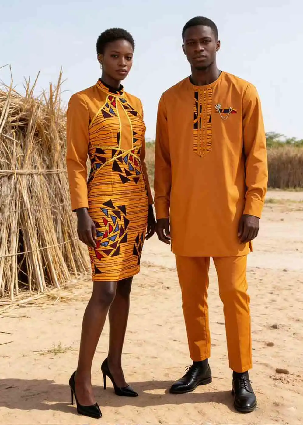 Matching African Abaya Hip Dresses Set for Stylish Couples