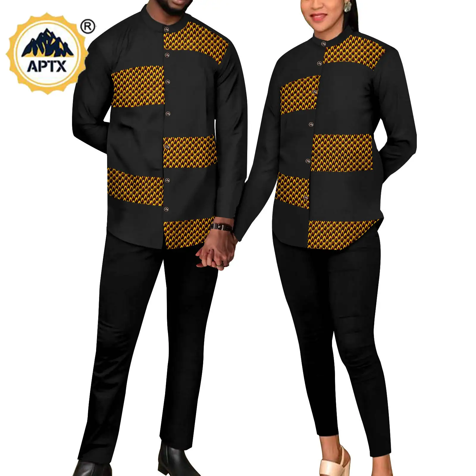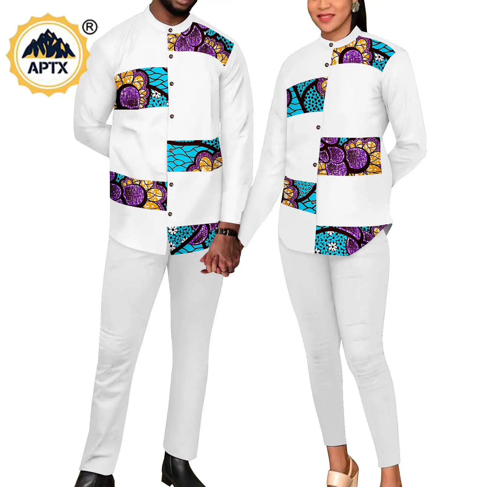 Elevate your style with these exquisite matching African Bazin Riche outfits designed for couples. Featuring vibrant prints, long sleeve shirts, and comfortable pant sets, this ensemble is perfect for special occasions and celebrations.