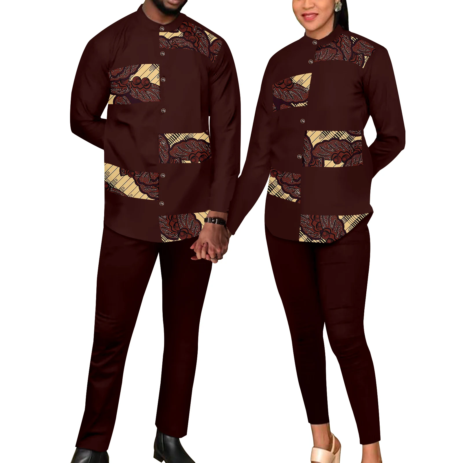 Matching African Bazin Riche Outfits for Couples – Print Shirt and Pant Sets