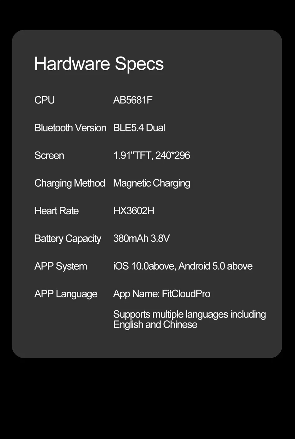 Bluetooth Calling (Dial Pad/Call Log/Frequent Contacts), Health Triad (Activity/Workout/Standing), Voice Assistant, Exercise Tracking, Activity Logs, Heart Rate/Sleep Monitoring/Breathing Exercises, Calendar/Date/Day/Time Display, Weather/Notification Alerts, Shake-to-Snap, Sedentary Reminders, Hydration Alerts, Step Counting/Distance/ Calories, Music Control, Card Management, Alarm, Bluetooth Switch, Call Notification/Reject Call/Do Not Disturb Mode, Raise to Wake, Find My Phone, Stopwatch/Calculator/Timer, Business Cards, Payment QR Code, Multiple Watch Face Switching, App Watch Face Push Notifications, Brightness Adjustment, Passcode, Firmware Update, Settings, Power Off, etc.