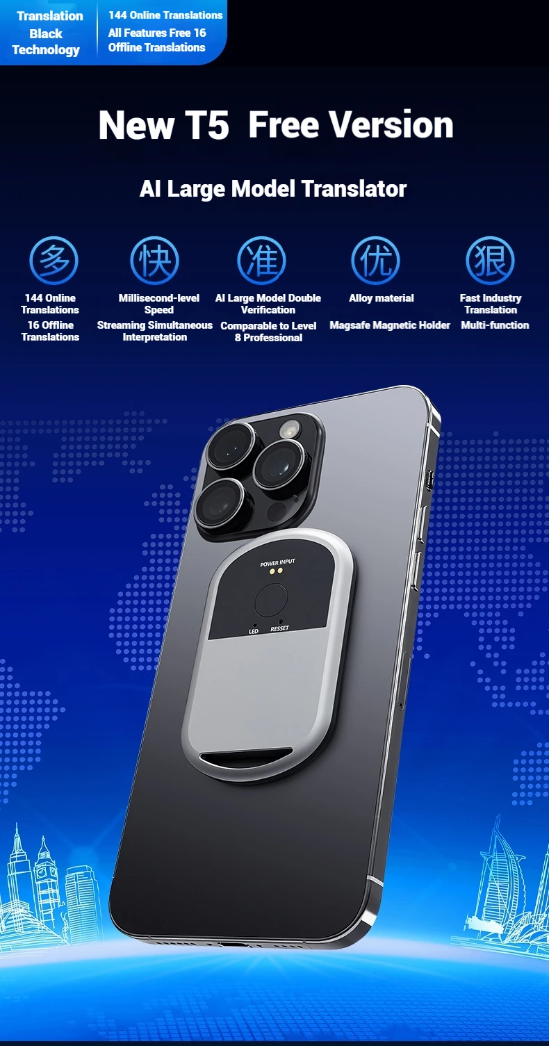 MOGCO T5 AI Translator: 144 Lang., 0.5s Speed, 98% Accuracy, Photo/Video Translate