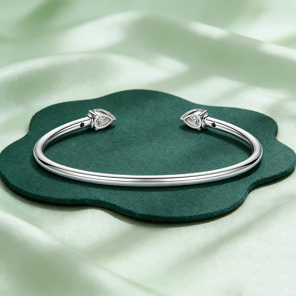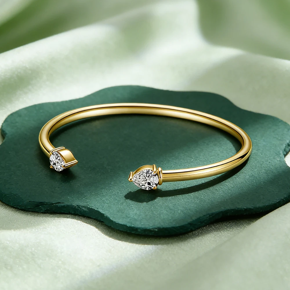 Enhance your style with this elegant Moissanite Bangle for women. Crafted with 925 silver and plated with 18K gold, this open bracelet is perfect for adding a touch of sophistication to your wrist jewelry collection.