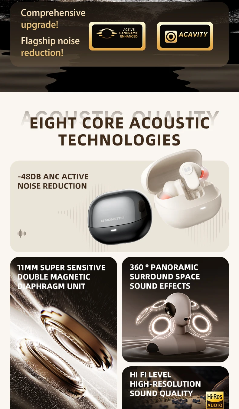 Experience the ultimate wireless gaming experience with the Monster AIRSTAR M300 OWS Wireless Earphones. These earbuds feature Bluetooth 6.0 technology, HD calls, and noise-canceling capabilities for immersive gameplay.
