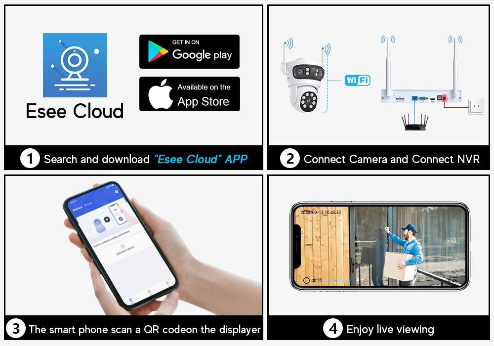 NVR Kits Adopts advanced H.265 video compression,reduces 50% file size and keep same quality compared to H.264 one.