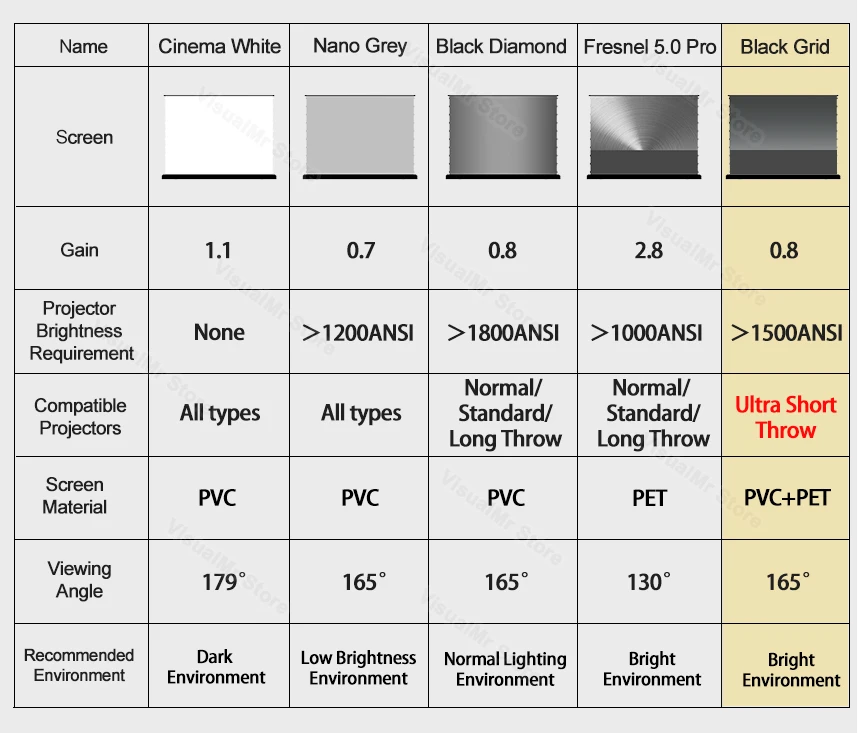 ▸Projector Supported: Normal (Medium/Long Throw) Projectors (Recommend≥1800ANSI)