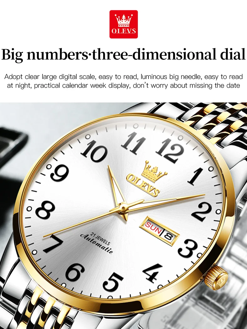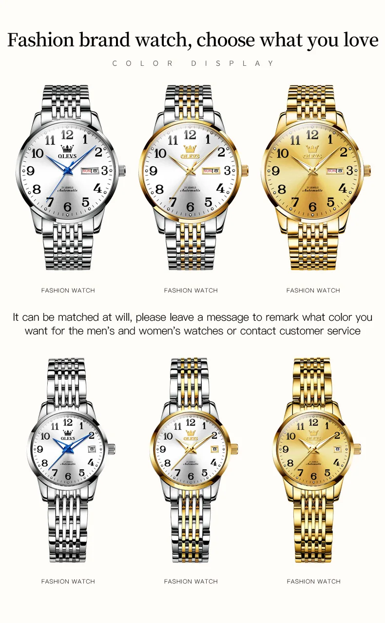 OLEVS 6666 Luxury Brand Automatic Mechanical Couple Watch Waterproof Stainless Steel Lover Anniversary Gift His or Her Watch Set. Follow the store for exclusive benefits and quick delivery. Enjoy an additional exclusive benefit price!