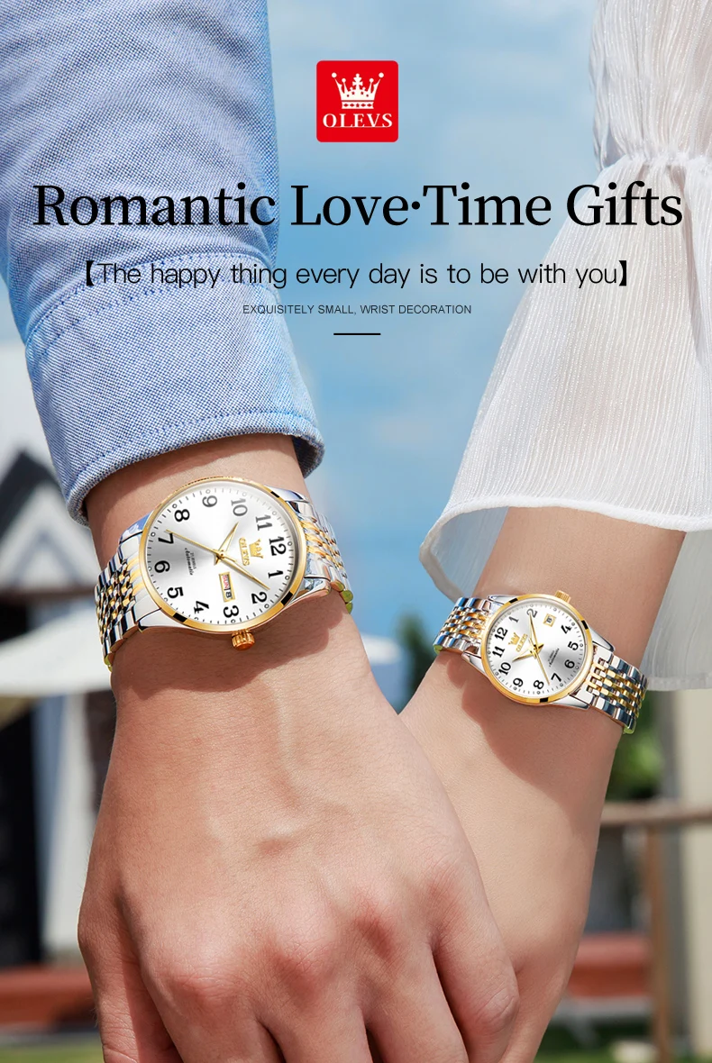 OLEVS Luxury Mechanical Couple Watch Set – Waterproof Stainless Steel Anniversary Gift
