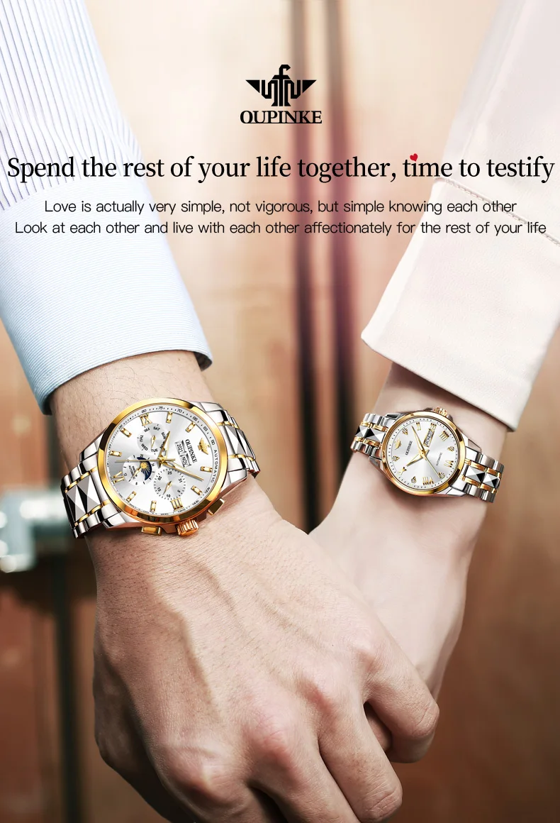 Experience timeless elegance with OLEVS Moon Phase Couple Watches. Crafted for men and women, this original mechanical watch set features a waterproof design and chronograph functionality. Perfect for couples who appreciate precision and style.