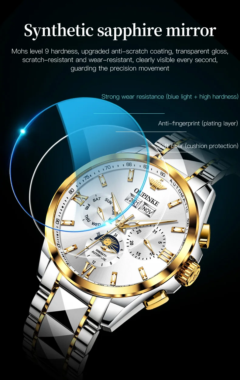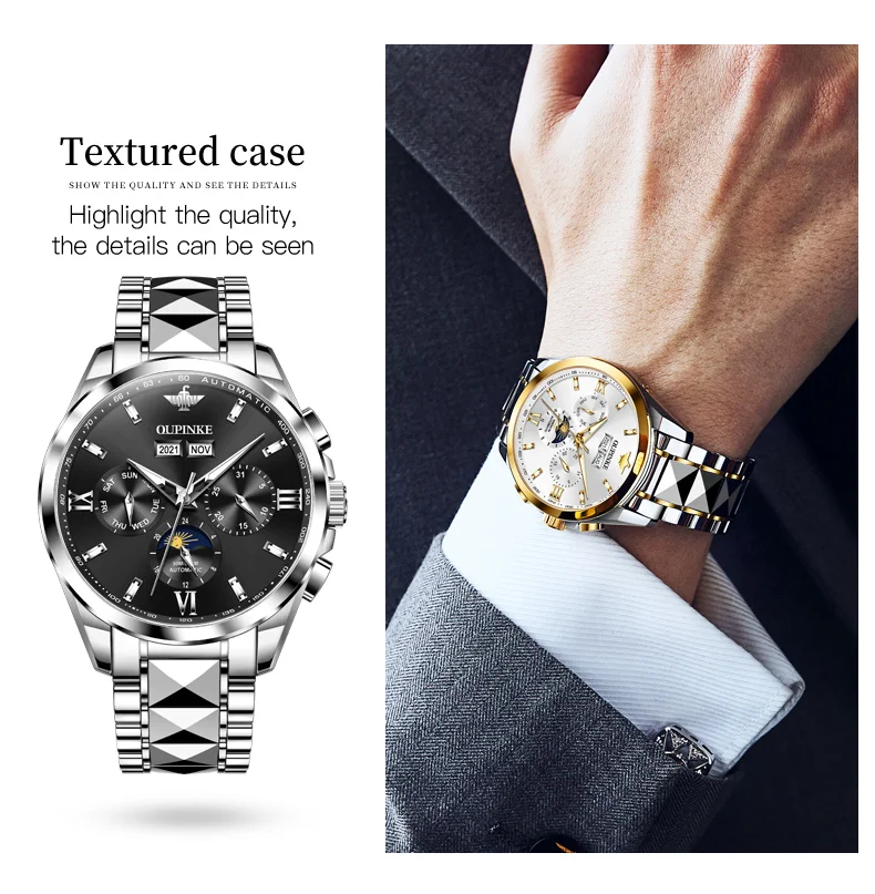 OLEVS Moon Phase Couple Watches – Original Mechanical Watch Set Tungsten Steel Waterproof Chronograph