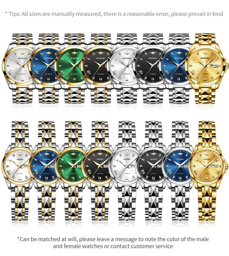 OUPINKE 3171 Luxury Brand Men Women Couple Watches Automatic Mechanical Watches Classic Gifts Date Week Clocks His Her Watch Set