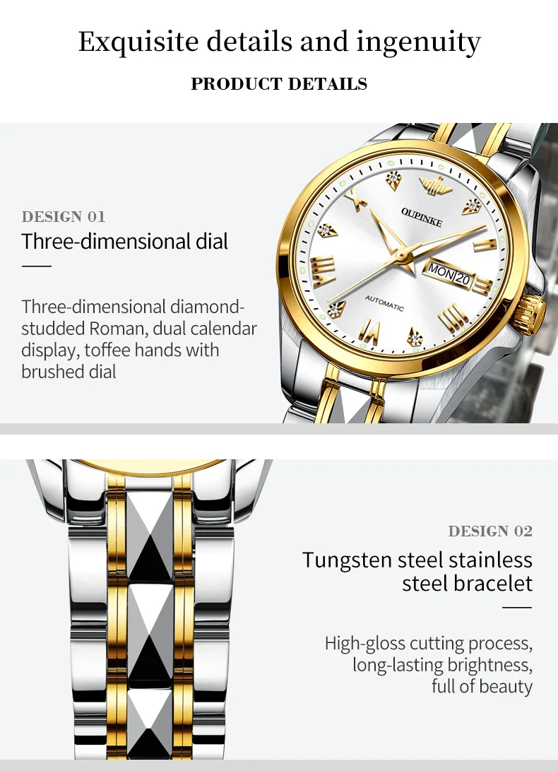 Experience the luxury and elegance with the OUPINKE 3171 Couple Watches Set. This automatic mechanical watch is a perfect gift for couples, featuring classic design and functionality.