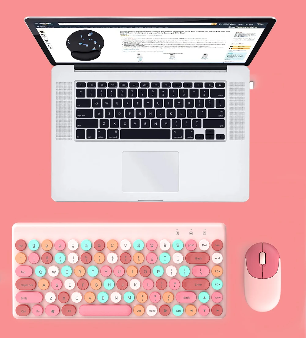Experience wireless convenience with this pink keyboard mouse combo. With high optical resolution, versatile compatibility, and RoHS certification, it offers precise movements, sustainability, and wide device support.