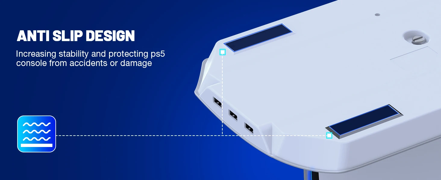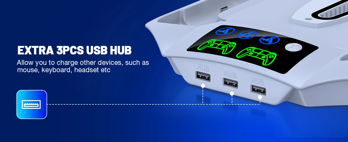 • Active Cooling System: Features a high-speed, quiet cooling fan with three adjustable speeds (Strong/Medium/Normal) to actively draw heat away from your console, preventing overheating and extending its lifespan.