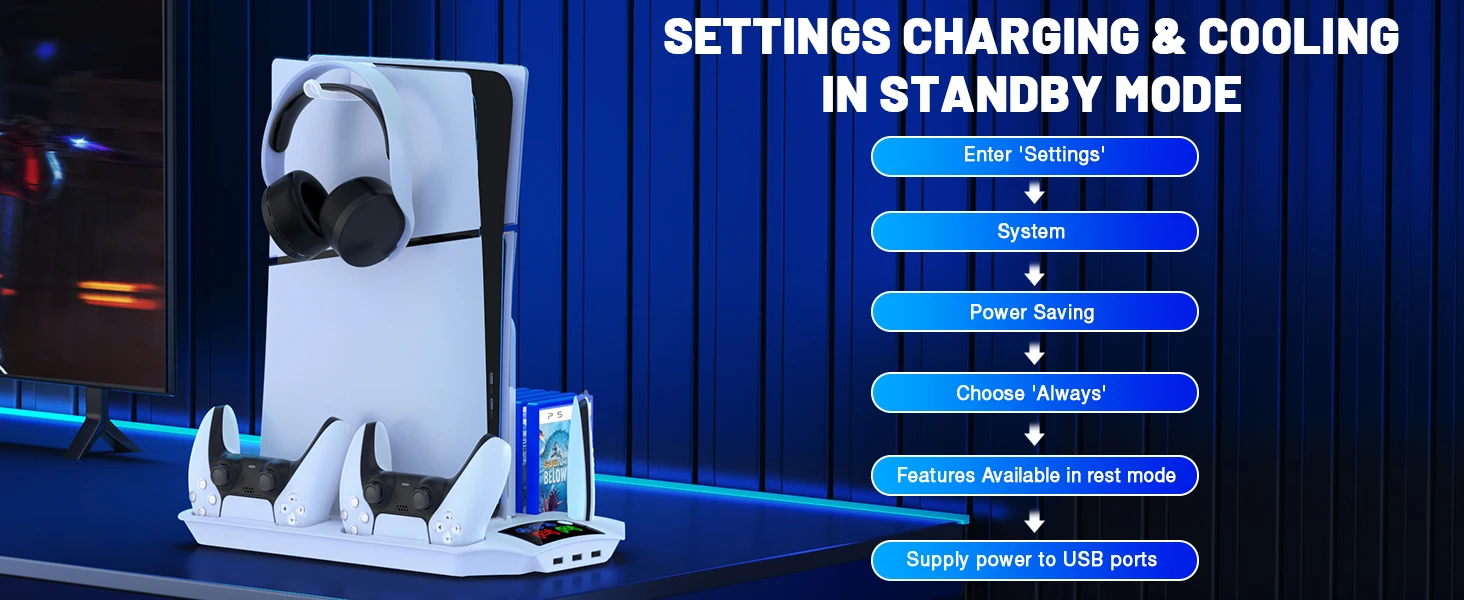 1x Stand for PS5 with Cooling Fan & Controller Charger